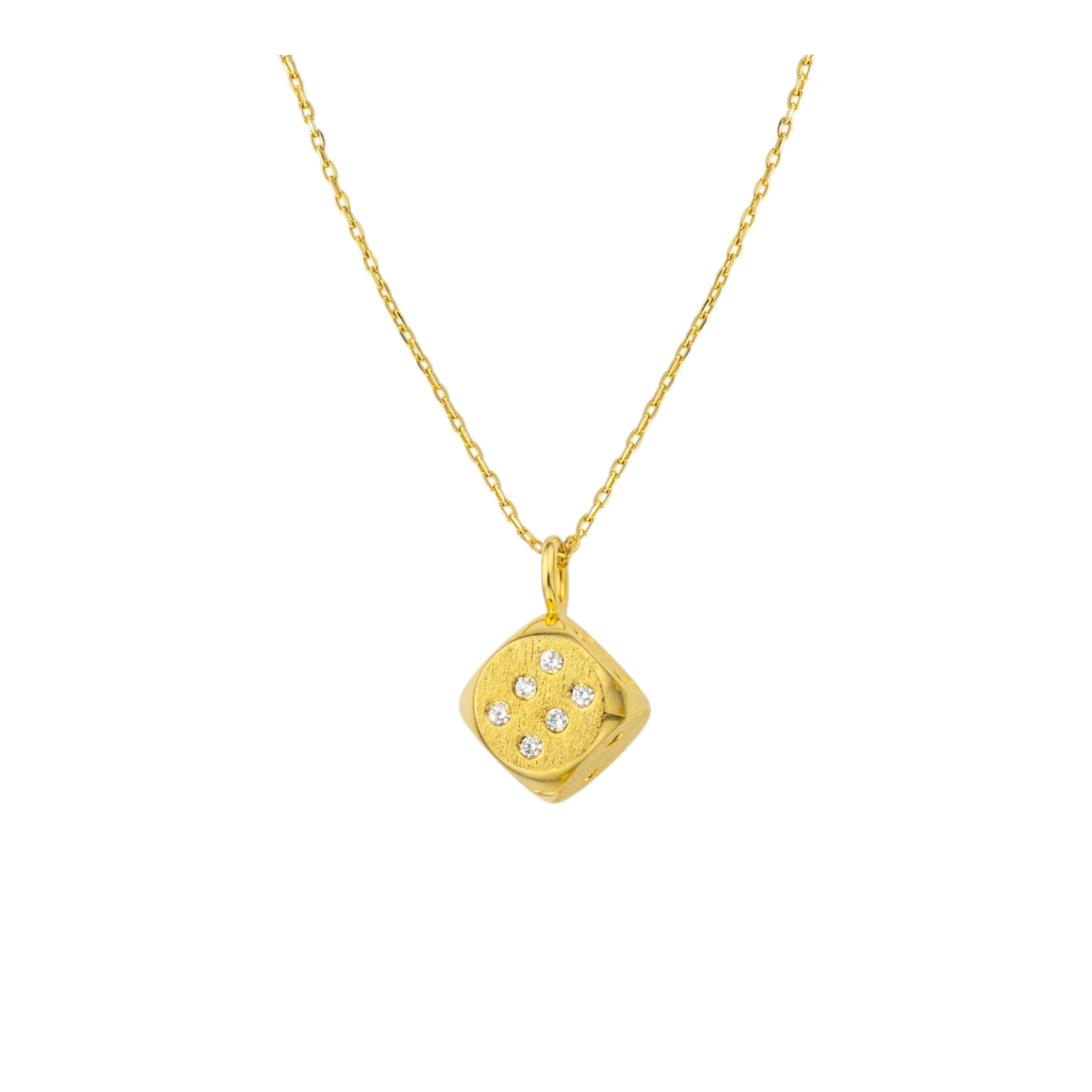 Κολιέ με αλυσίδα και κρεμαστό επίχρυσο κόσμημα ζάρι με πέτρες στα νούμερα - MYA-BAY