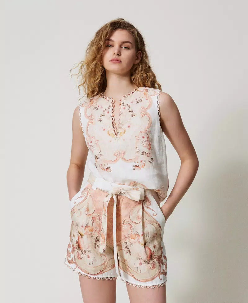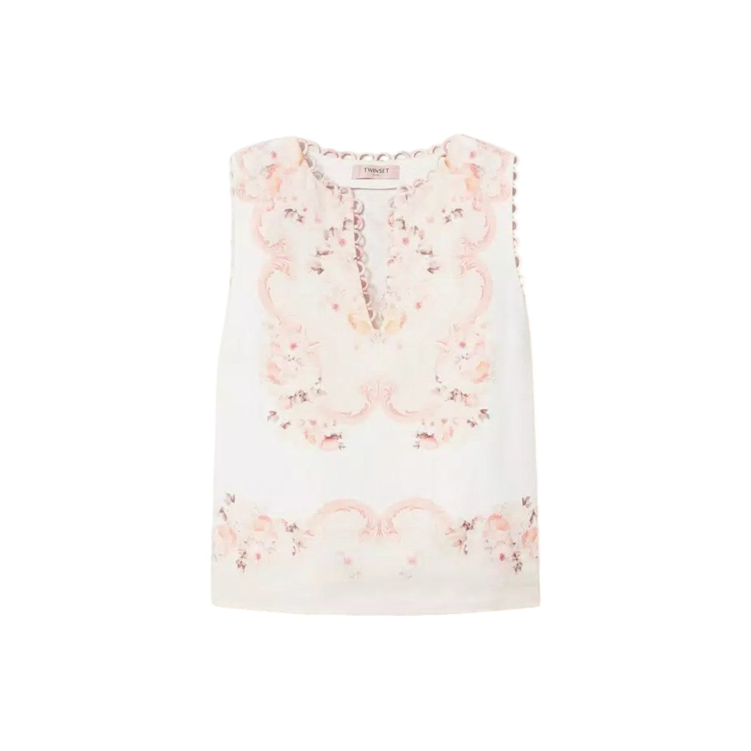 Αμάνικο τοπάκι εκρού με μπεζ φλοράλ σχέδια, με μεταλλικό σήμα στην πλάτη - Twinset
