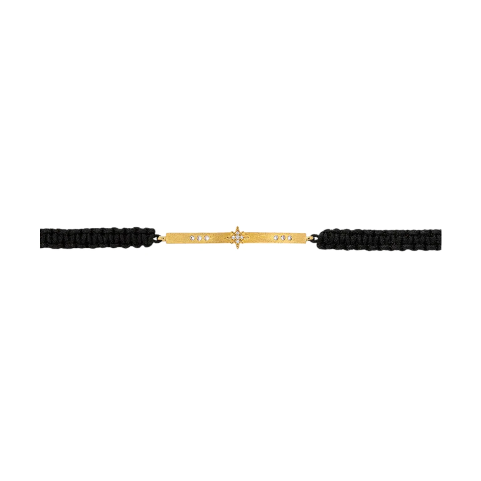 Βραχιόλι από πλεκτό κορδόνι με ρυθμιζόμενο δέσιμο με διακοσμητικό στοιχείο από ορείχαλκο επιχρυσομένο με πέτρες και - MYA-BAY