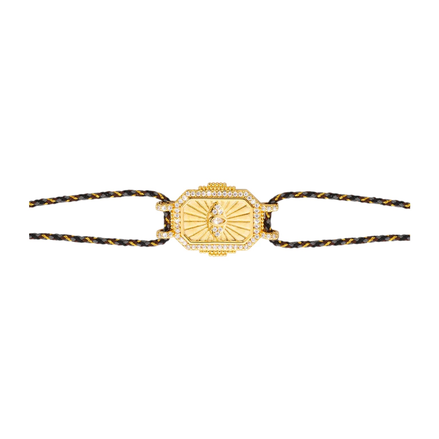 Βραχιόλι από κορδόνι με ρυθμιζόμενο κούμπωμα με διακοσμητικό στοιχείο από ορείχαλκο επιχρυσομένο με πέτρες - MYA-BAY
