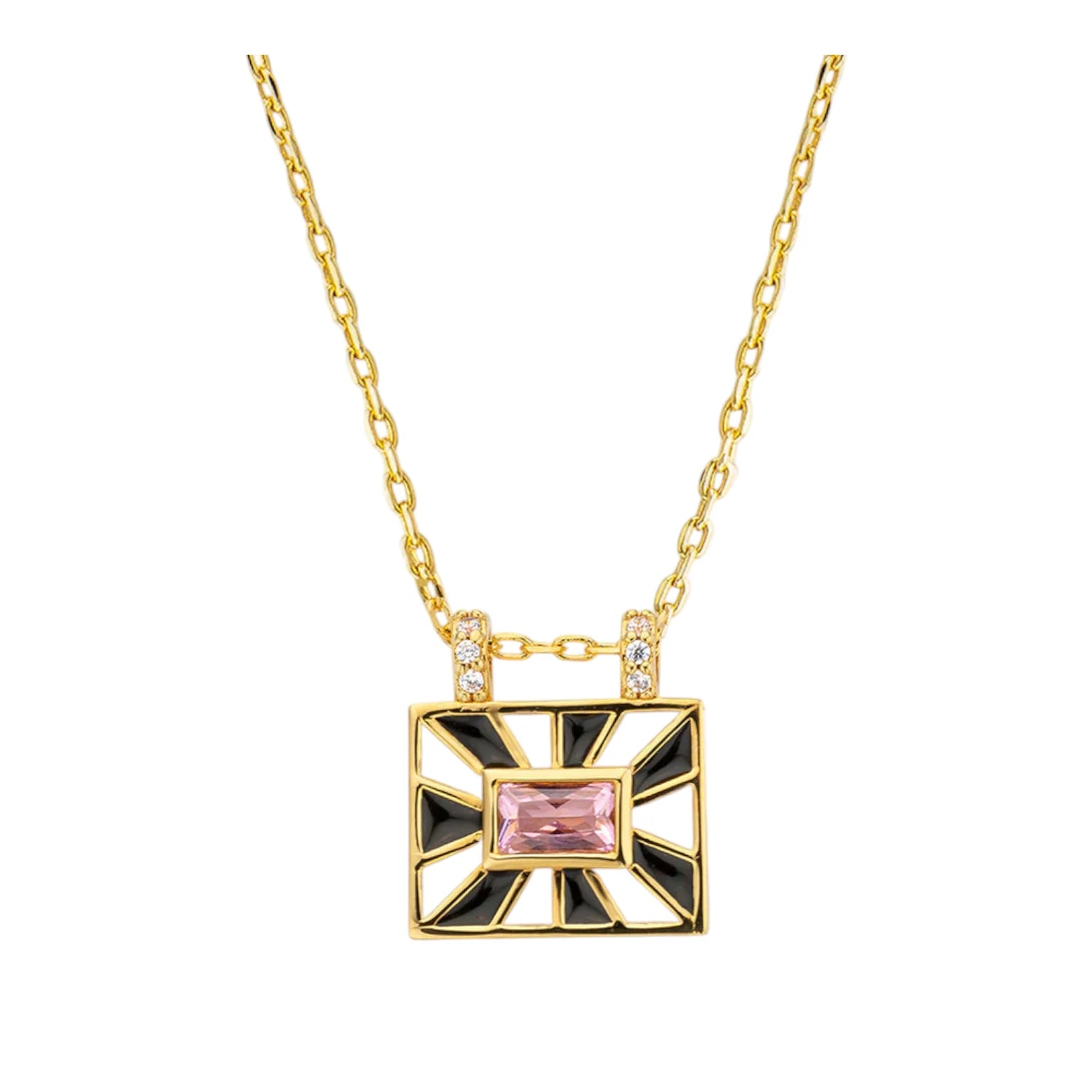 Κολιέ με χρυσή αλυσίδα με επίχρυσο κρεμαστό κόσμημα-σταυρό, με ασπρόμαυρες λεπτομέρειες καί πέτρες - MYA-BAY