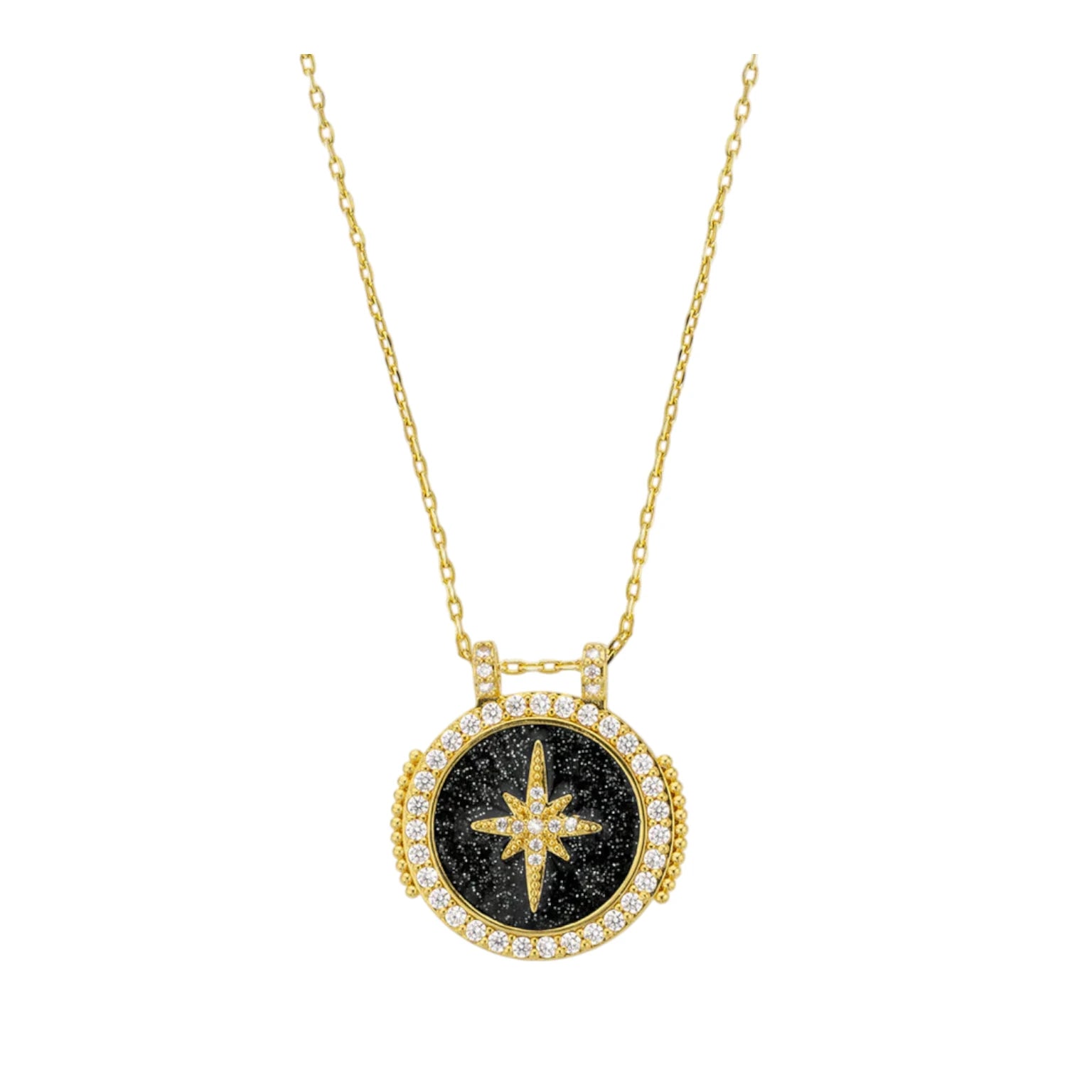 Κολιέ με χρυσή αλυσίδα με επίχρυσο κρεμαστό κόσμημα με μαύρες λεπτομέρειες και πέτρες - MYA-BAY