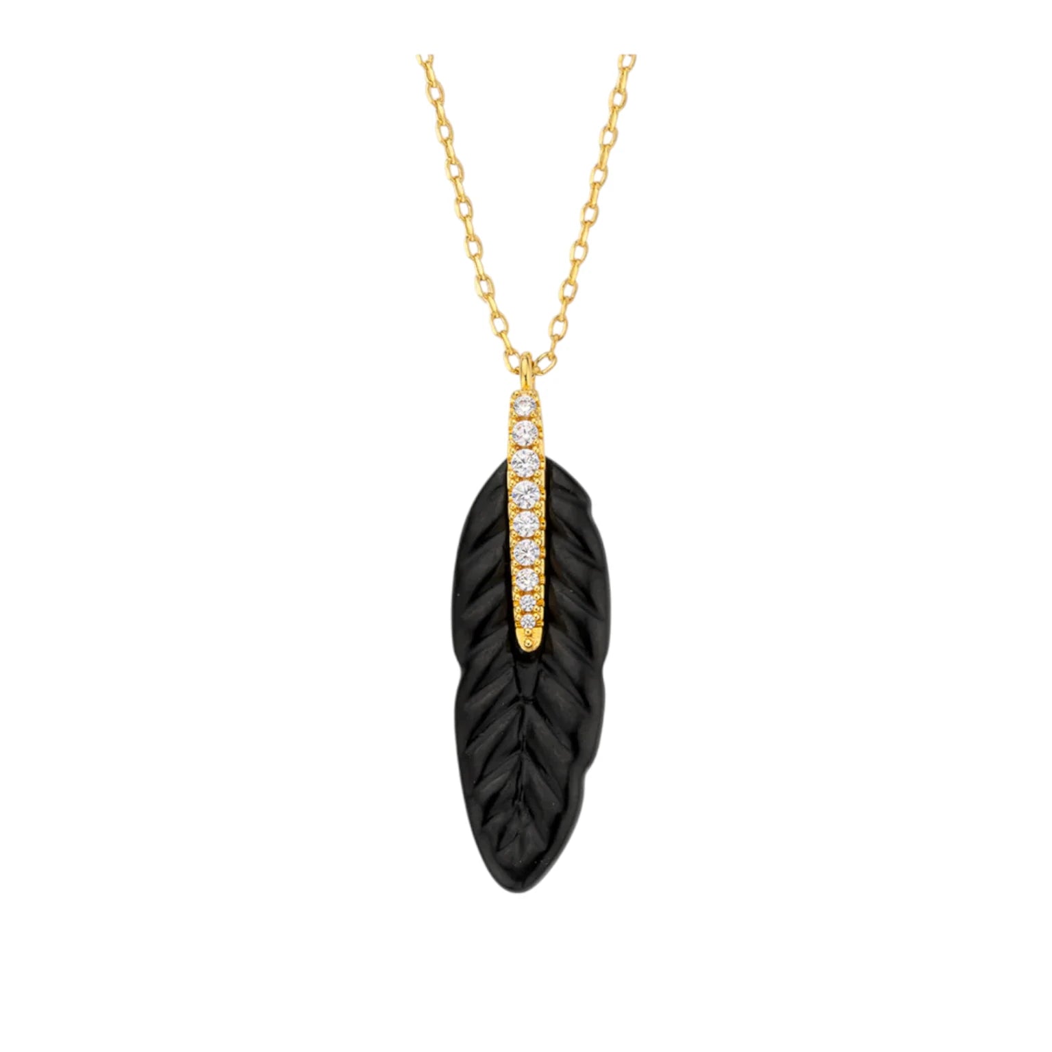 Κολιέ με χρυσή αλυσίδα με μαύρο κρεμαστό κόσμημα με λεπτομέρειες απο πέτρες - MYA-BAY