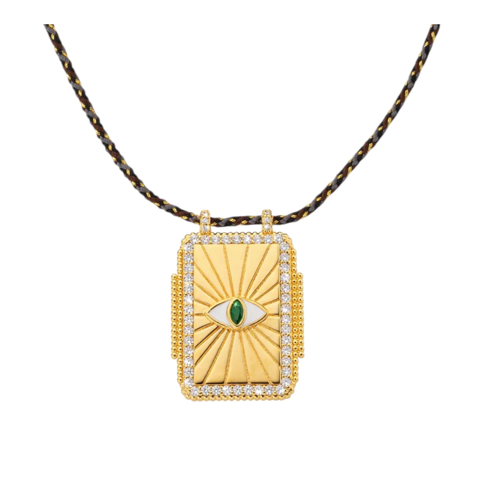 Κολιέ με κορδόνι και επίχρυσο κρεμαστό κόσμημα με μάτι και διακοσμητικές πέτρες - MYA-BAY