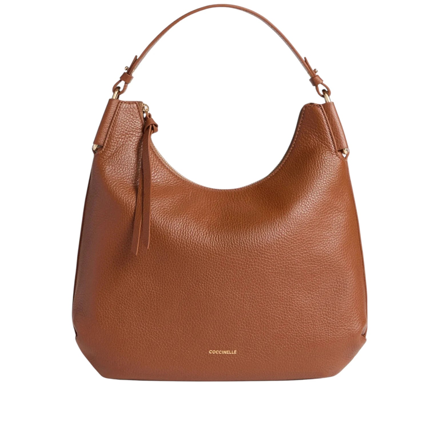 Τσάντα ώμου σε καφέ ταμπά, δερμάτινη, με μακρύ χερούλι για κράτημα στον ώμο και κλείσιμο με φερμουάρ - COCCINELLE
