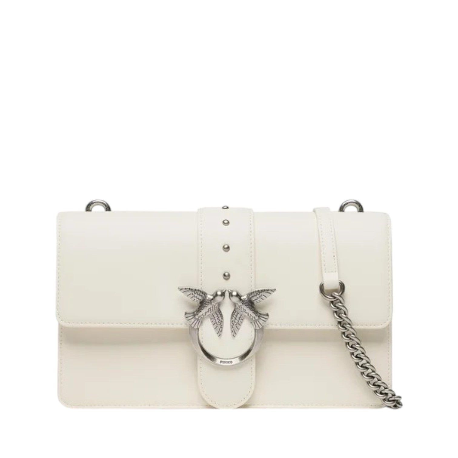 Τσάντα Classic Love Bag Icon από μαλακό δέρμα με μεταξένια υφή. Το κλείσιμο με δερμάτινο γλωσσάκι με μικρά μεταλλικά τρουκς ολοκληρώνεται με την εμβληματική μεταλλική αγκράφα Love Birds Diamond Cut. Το εσωτερικό είναι φοδραρισμένο με ύφασμα από μικροΐνες με σουέτ υφή και διαθέτει διαχωριστικό που κλείνει με φερμουάρ και τσέπη στο τοίχωμα. Το αφαιρούμενο λουρί συνδυάζει την κλασική στρογγυλή αλυσίδα με το πρακτικό, ρυθμιζόμενο, δερμάτινο λουράκι ώμου.