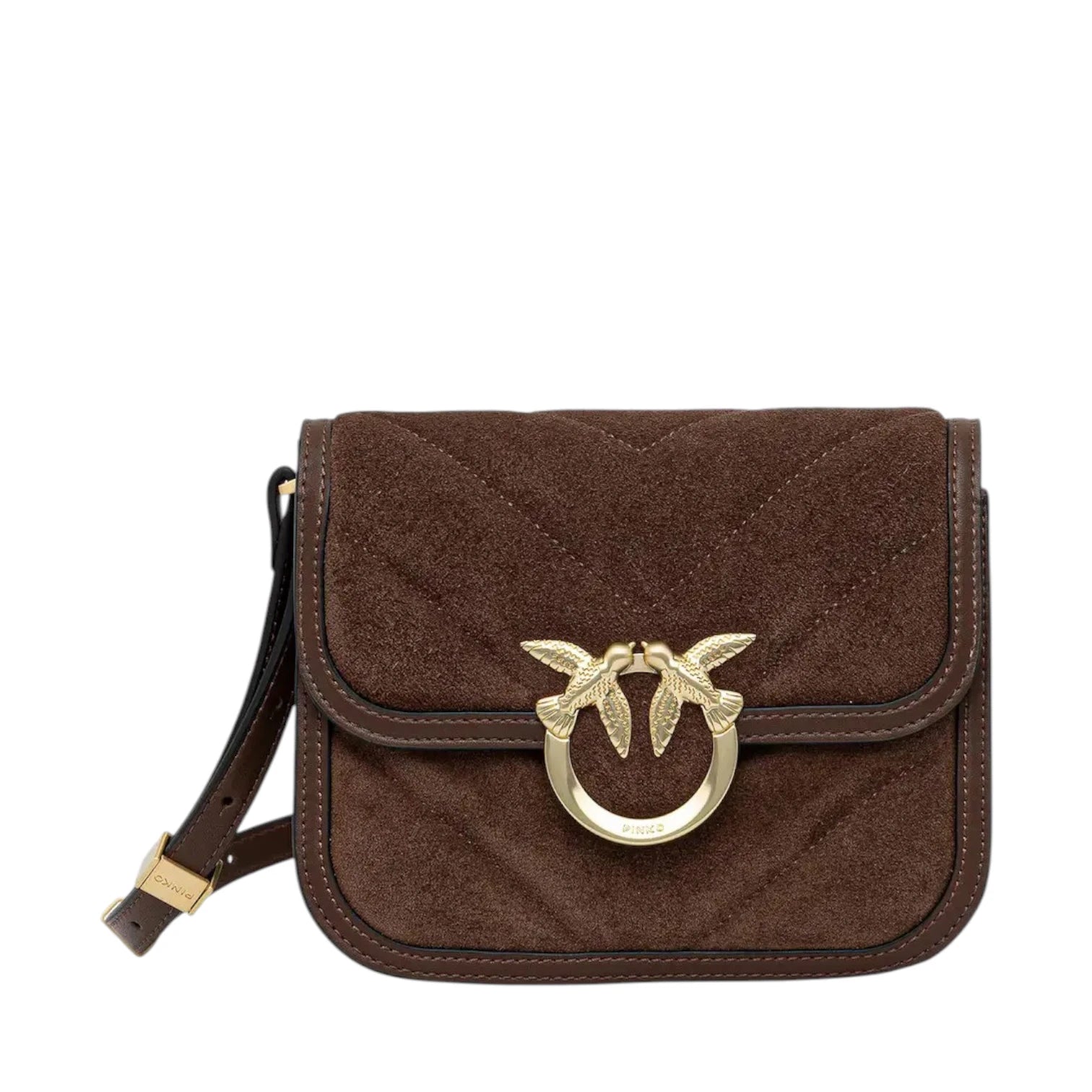 Τσάντα ώμου καφέ με χρυσά μέταλλα, δερμάτινη, με δερμάτινο ιμάντα για κράτημα στον ώμο - Pinko.