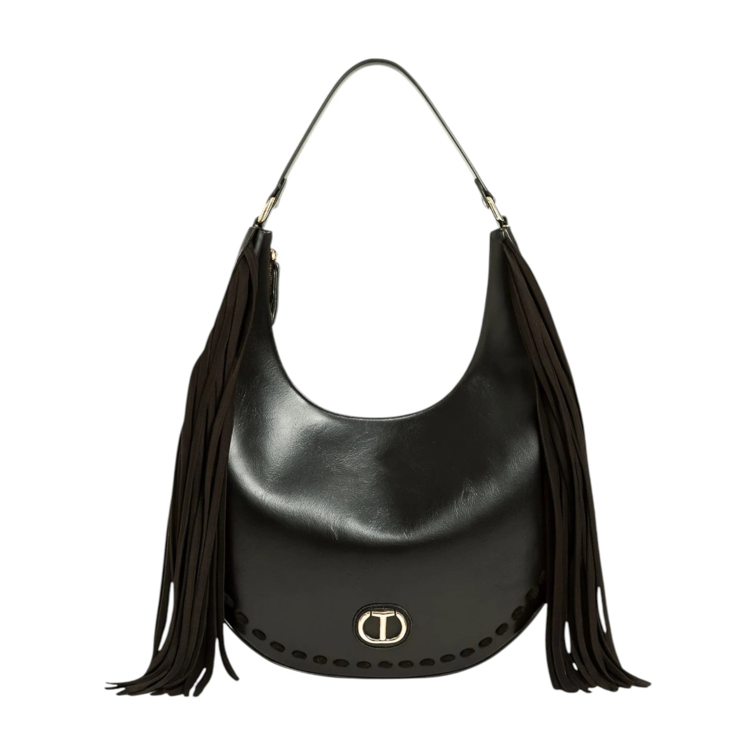 Τσάντα ώμου μαύρη, με διακοσμητικά κρόσια και με λουράκι για κράτημα στον ώμο Twinset