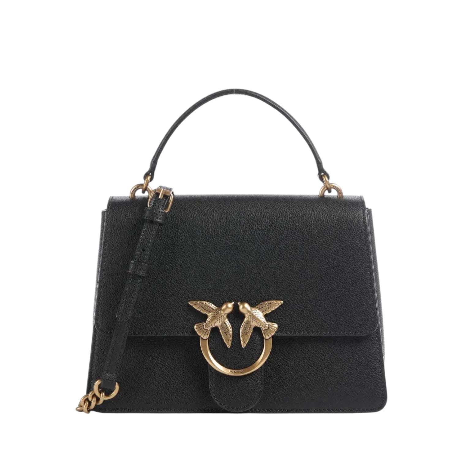 Τσάντα top handle μαύρη με μπεζ εσωτερικό, δερμάτινη με χερούλι και αλυσίδα για κράτημα στον ώμο ή χιαστί - Pinko