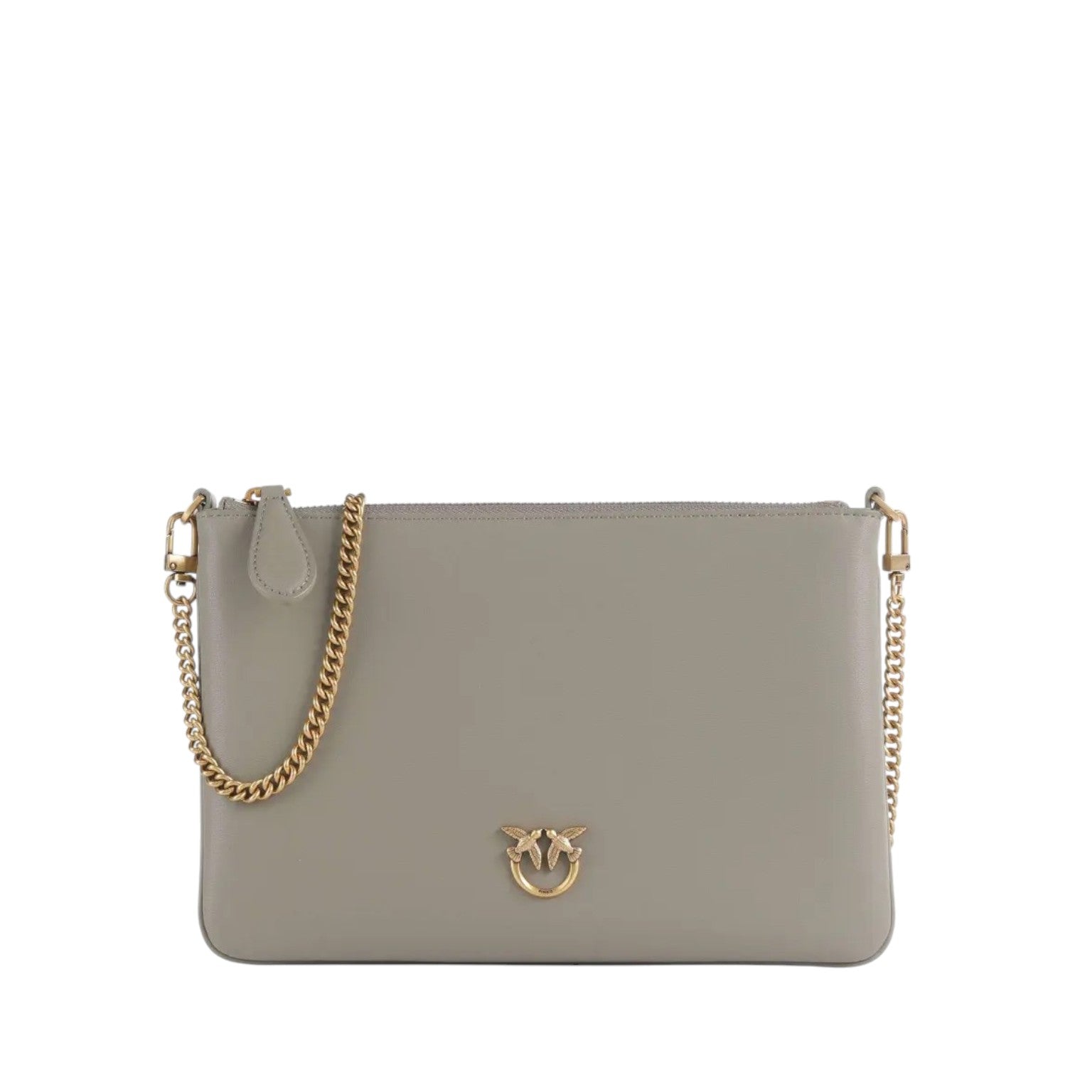Φάκελος taupe, δερμάτινος, με αλυσίδα για κράτημα στον ώμο ή χιαστί Pinko