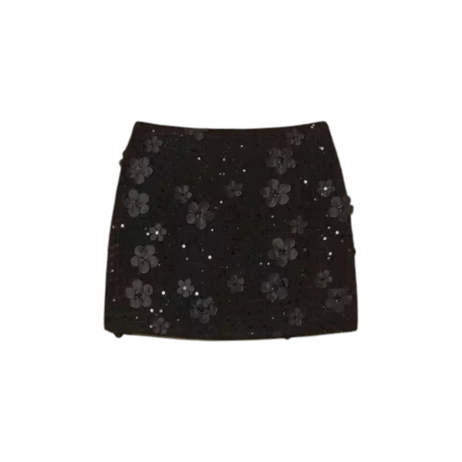 Φούστα μαύρη, πλεκτή, με διακοσμητικά λουλούδια - Twinset