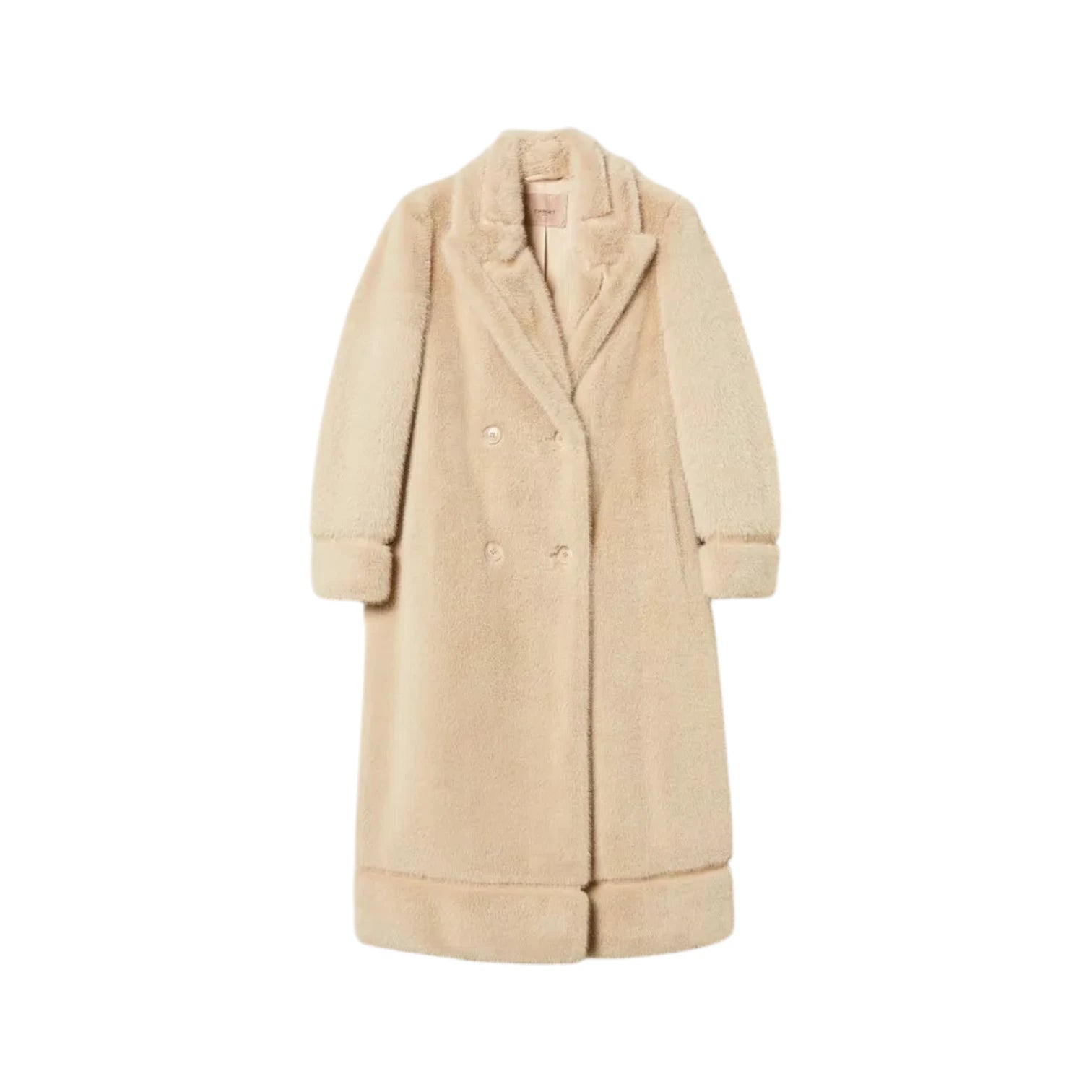 Παλτό γούνινο μπεζ, μακρύ με κλείσιμο με κουμπιά, Double breasted – Twinset