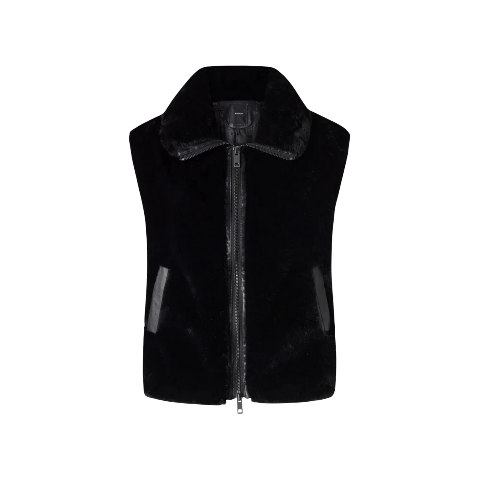 Αμάνικο Τζάκετ μαύρο, απο οικολογική γούνα με κλείσιμο φερμουάρ και γιακά - Pinko