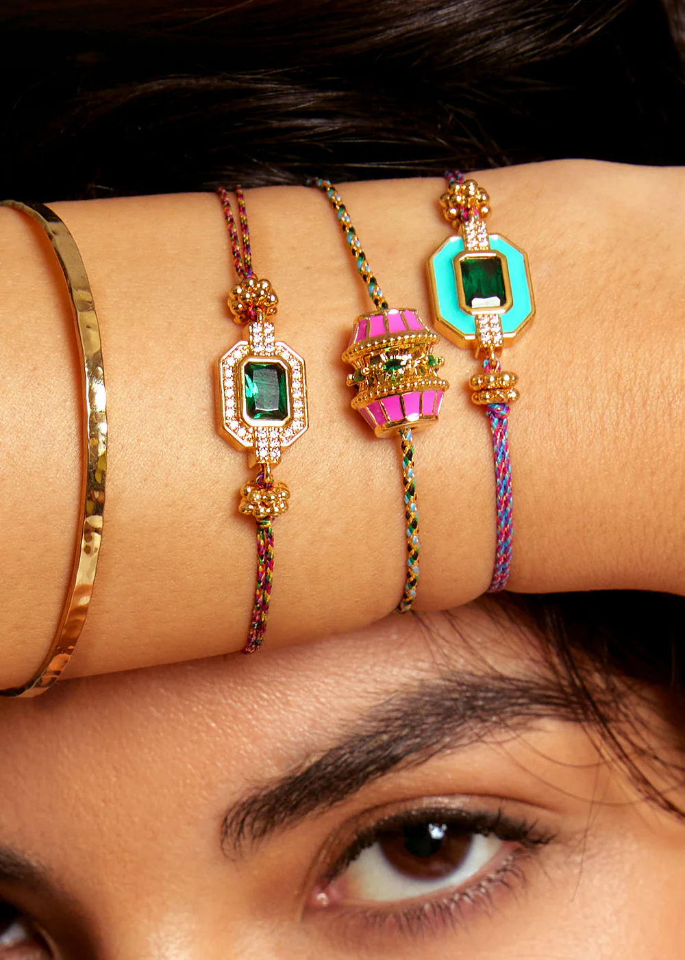 Βραχιόλι από κορδόνι με ρυθμιζόμενο δέσιμο με διακοσμητικό στοιχείο από ορείχαλκο επιχρυσομένο με πέτρες – MYA-BAY