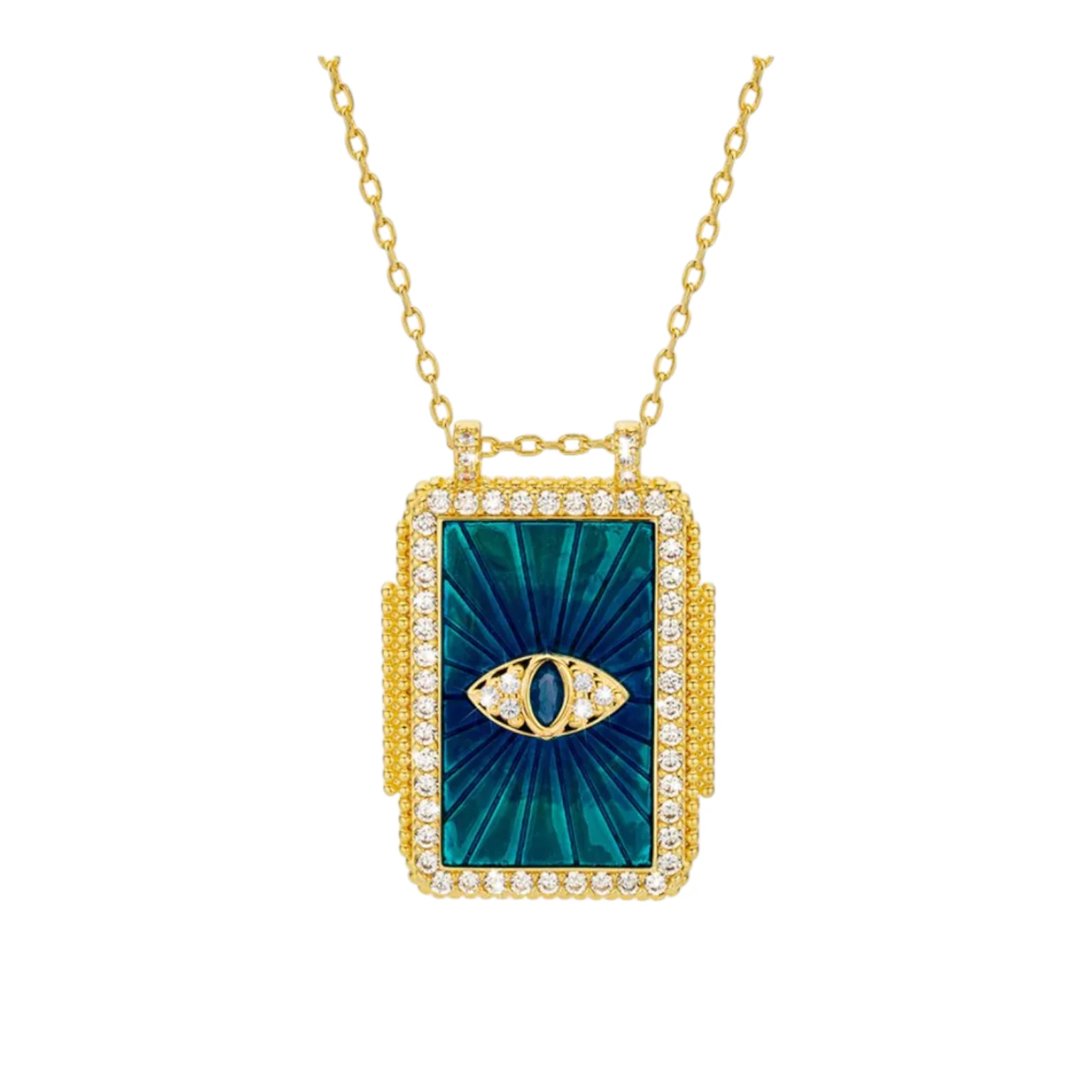 Κολιέ με χρυσή αλυσίδα με επίχρυσο κρεμαστό κόσμημα με μάτι, μπλε λεπτομέριες και διακοσμητικές πέτρες – MYA-BAY