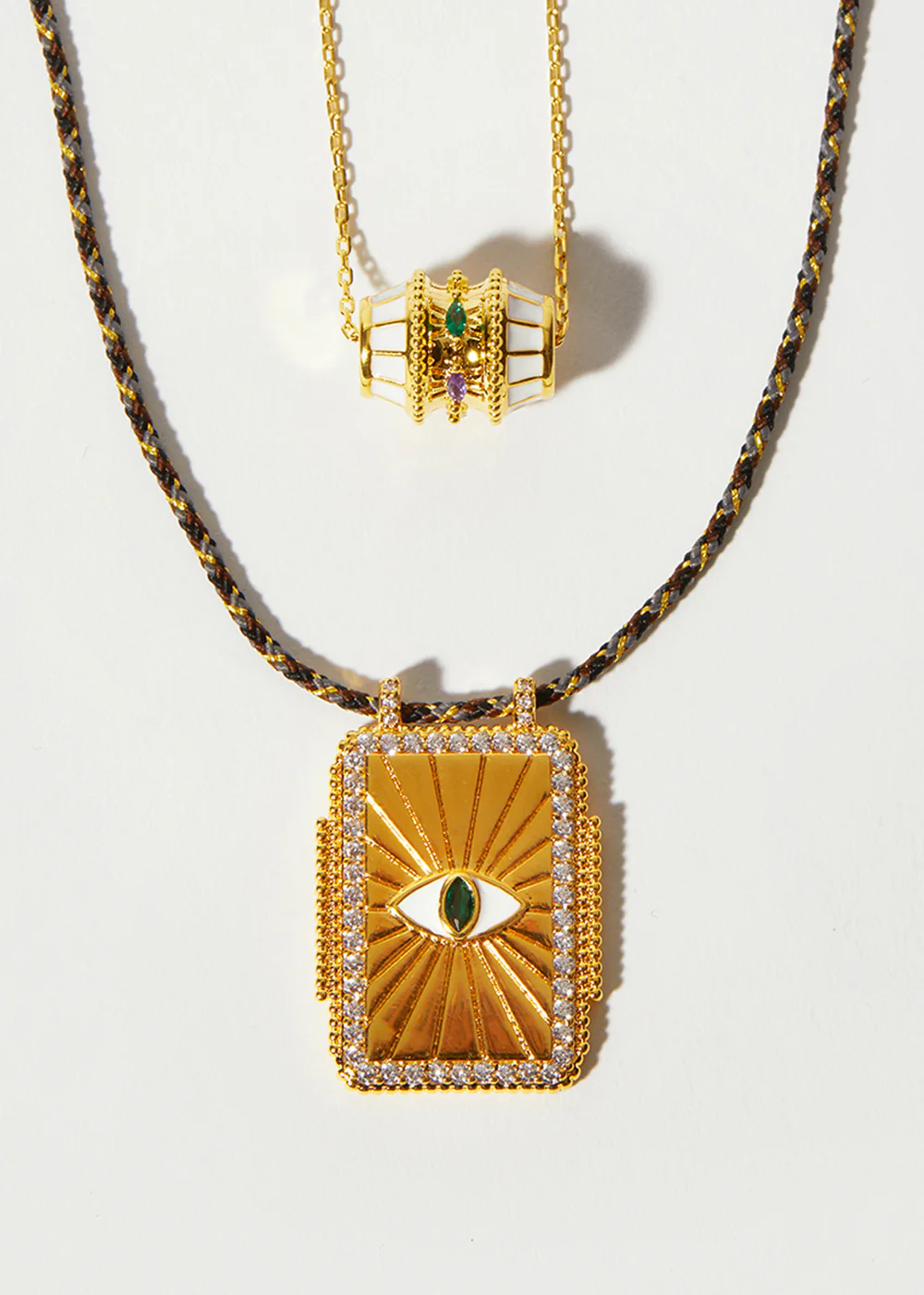 Κολιέ με κορδόνι και επίχρυσο κρεμαστό κόσμημα με μάτι και διακοσμητικές πέτρες – MYA-BAY