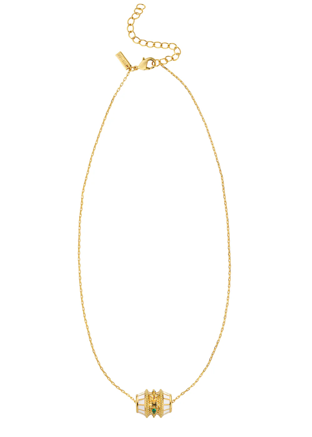 Κολιέ με κορδόνι και επίχρυσο κρεμαστό κόσμημα με λευκό λεπτομέριες και διακοσμητικές πέτρες – MYA-BAY