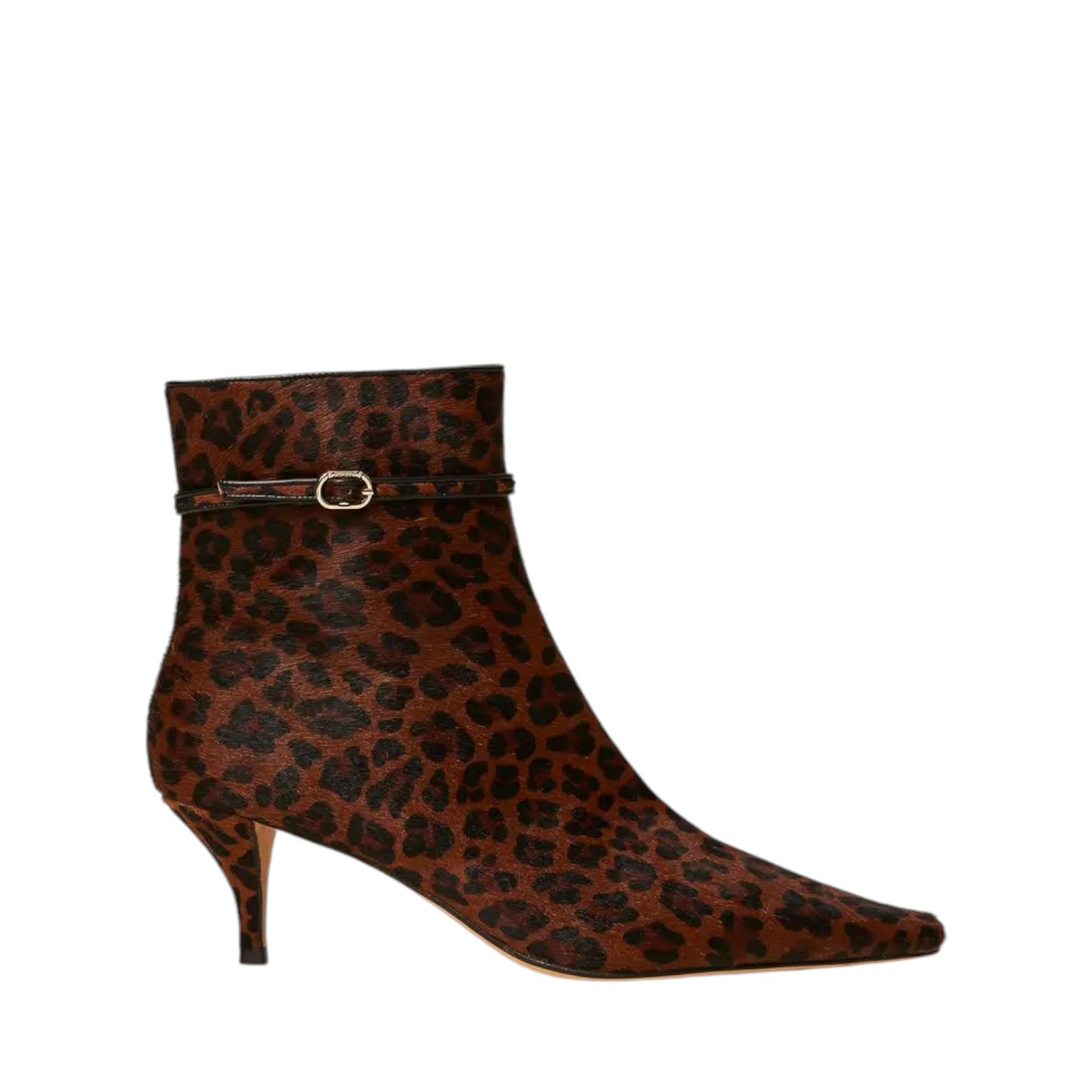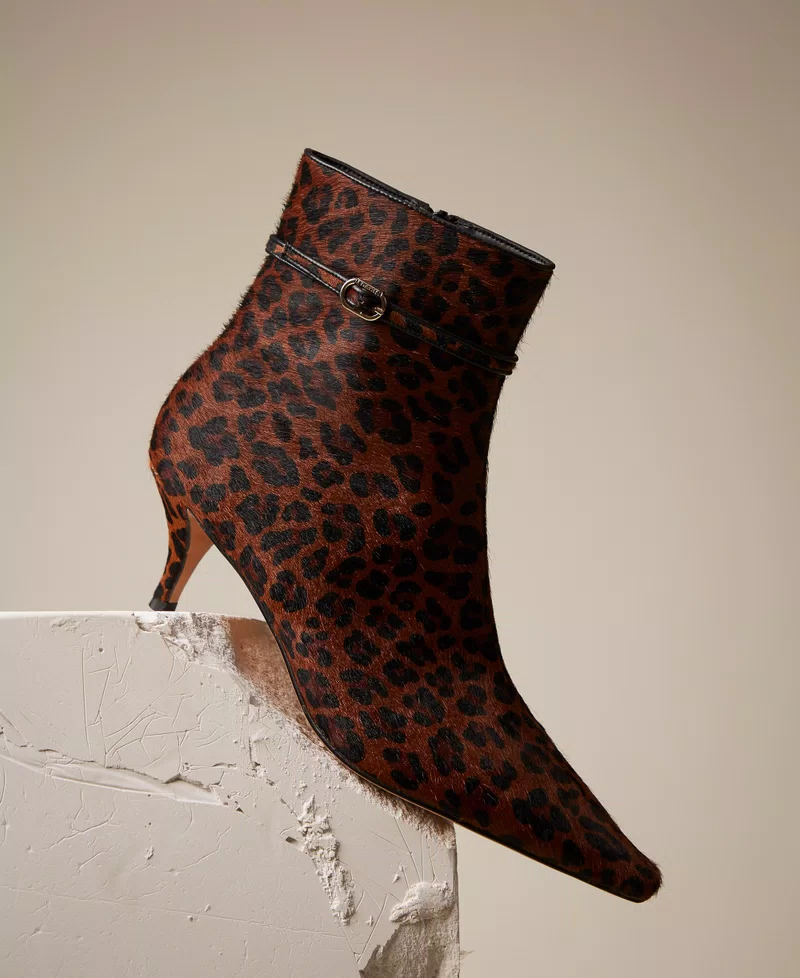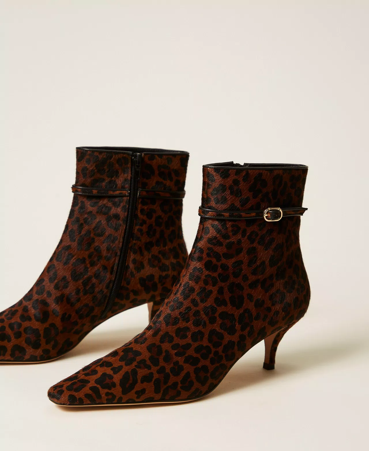 Μποτάκια λεοπάρ με Pony skin υφή, δερμάτινα, με κλείσιμο με φερμουάρ και λεπτό τακούνι 6cm – Twinset