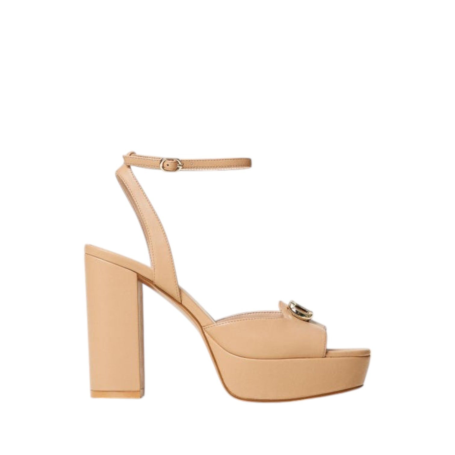 Πλατφόρμα μπέζ, με 12cm φαρδύ τακούνι, 3.5cm πλατφόρμα στο μπροστινό μέρος και δέσιμο στον αστράγαλο Twinset