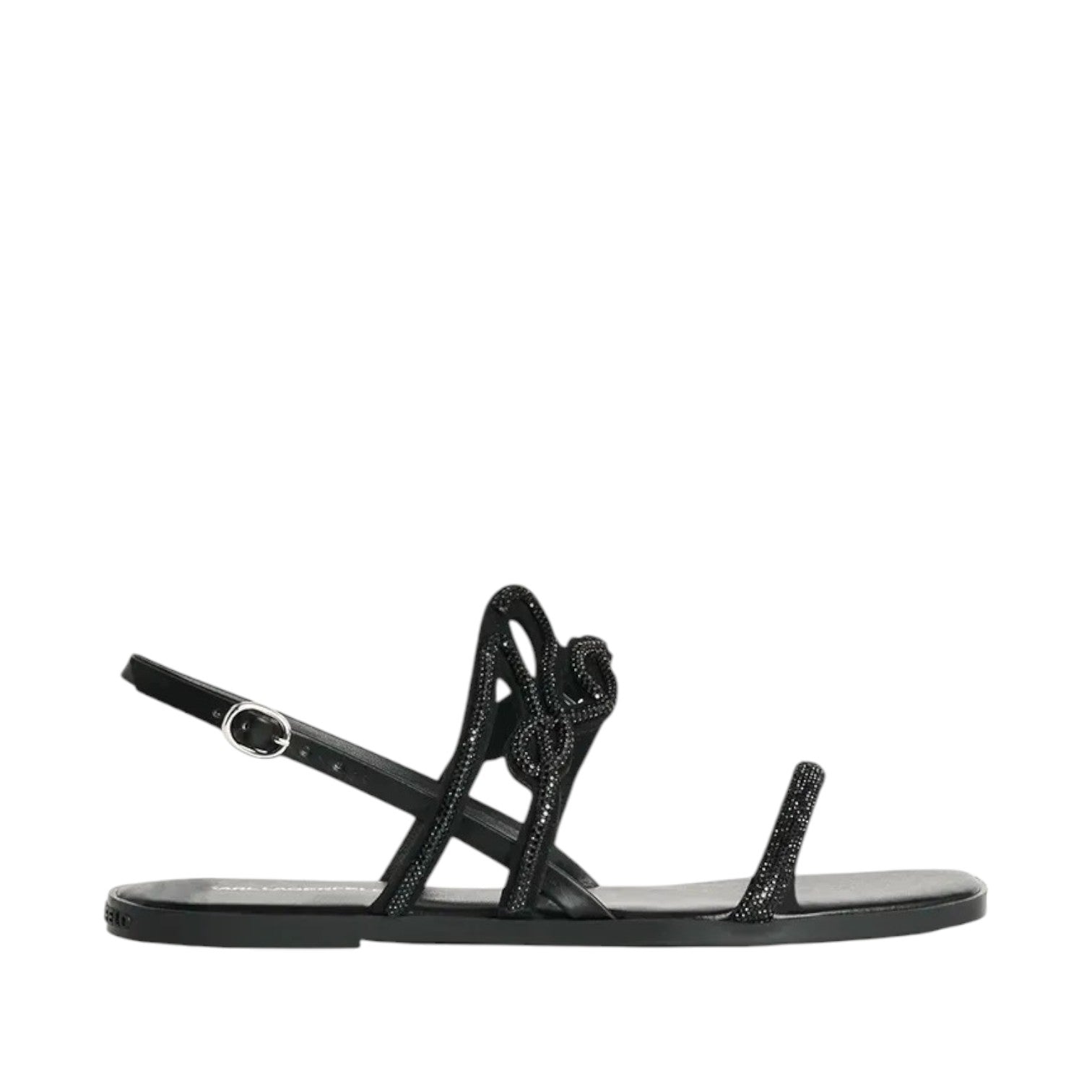 Σανδάλι μαύρο με διακοσμητικές πέτρες, δερμάτινο πάτο και υφασμάτινα λουριά - Karl Lagerfeld