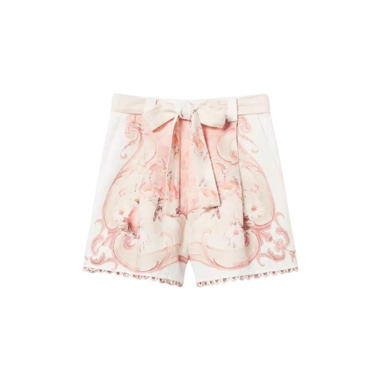 Σορτς εκρού με μπεζ φλοράλ σχέδια, λινό, με ίδιου υφάσματος ζώνη - Twinset