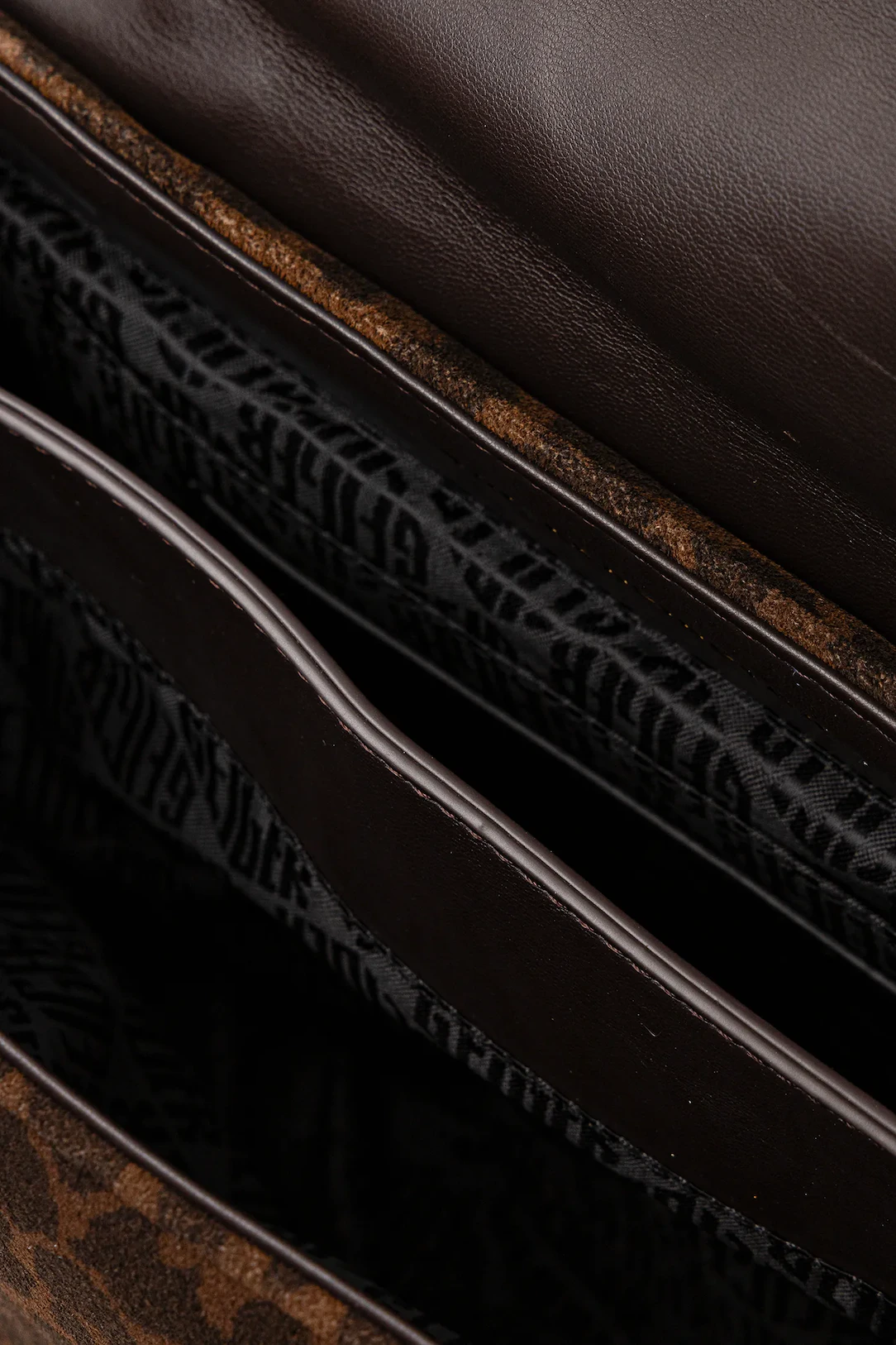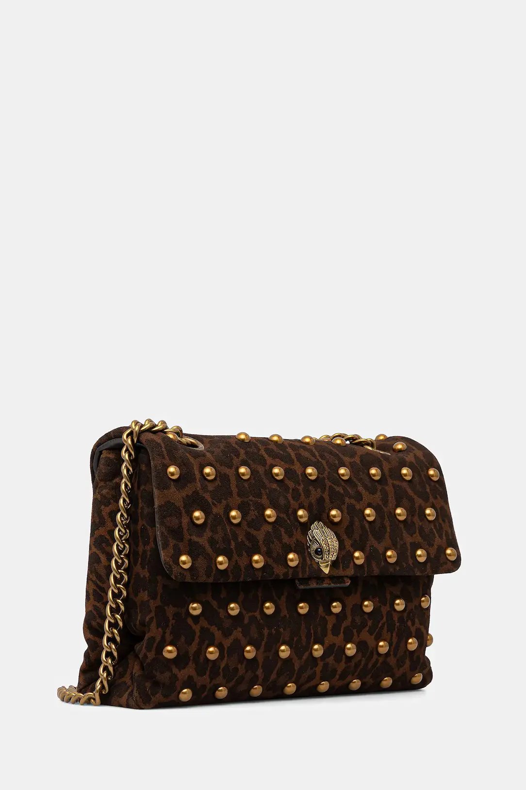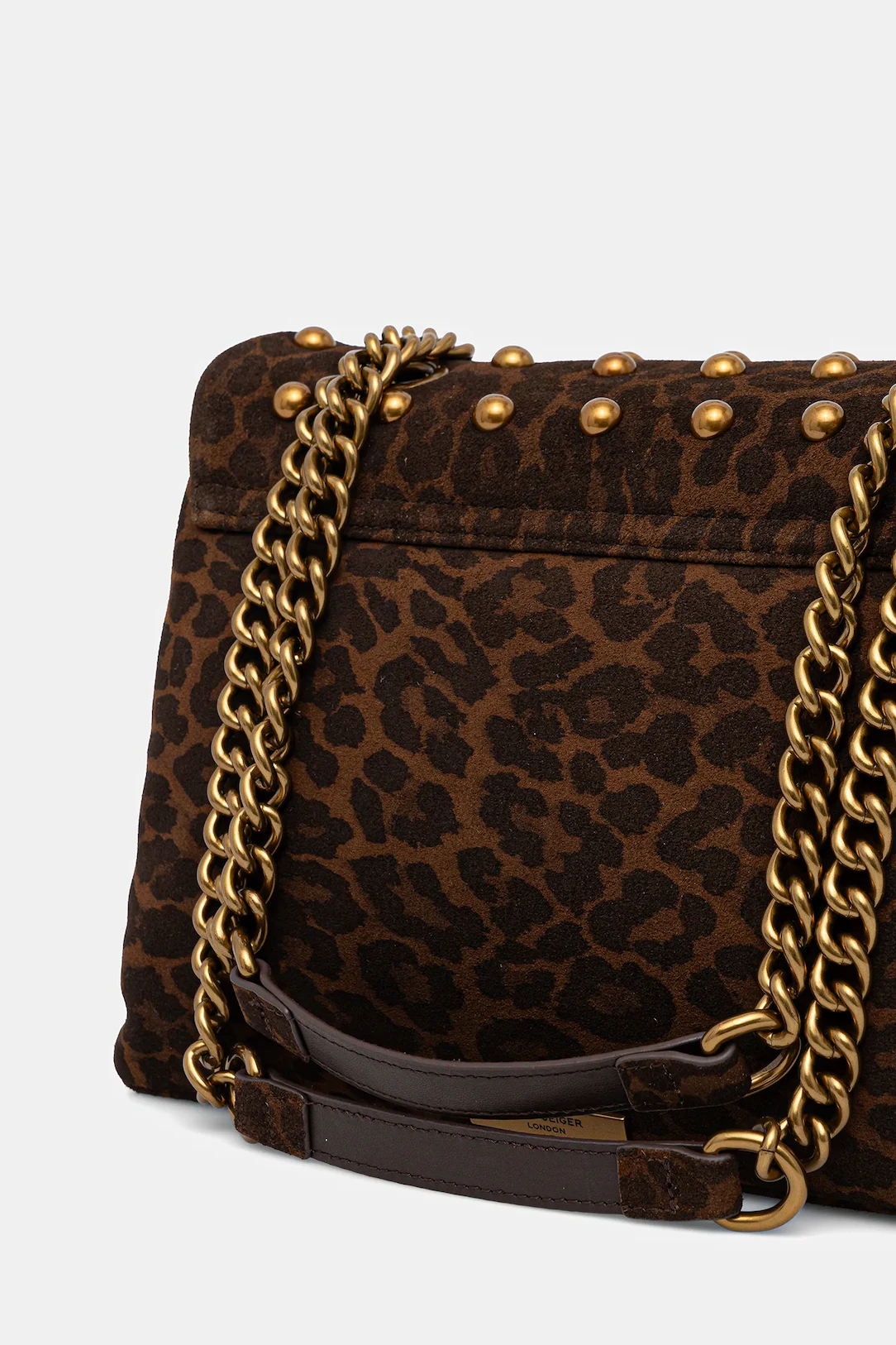 Τσάντα ώμου, απο σκούρο λεοπάρ suede με διακοσμητικά studs στο εξωτερικό και μαλακό δέρμα στο εσωτερικό και με αλυσίδα για κράτημα στον ώμο – Kurt Geiger