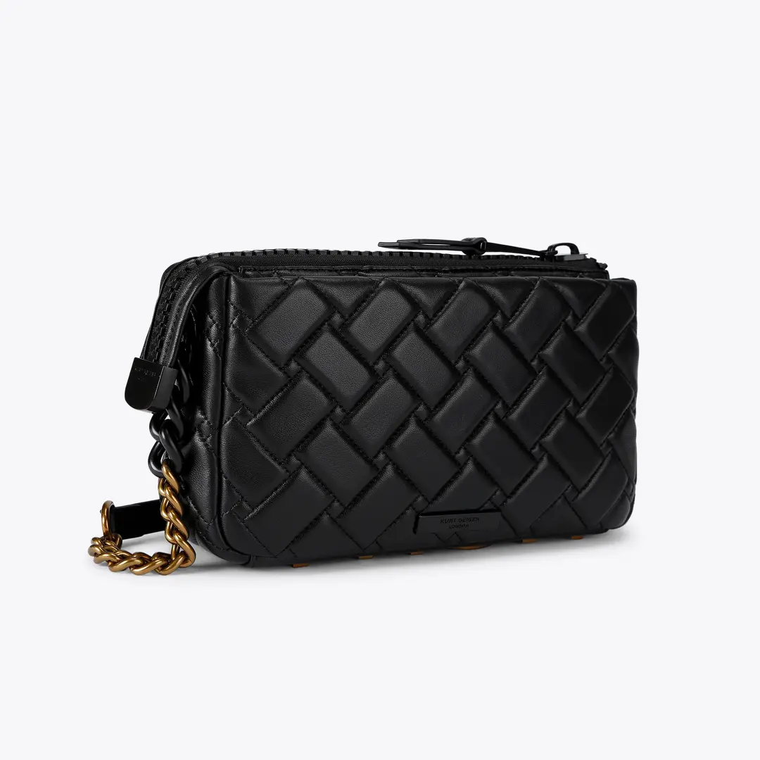 Τσάντα ώμου μαύρη, δερμάτινη καπιτονέ, με αλυσίδα για κράτημα στον ώμο αλλά και χιαστί και χαρακτηριστικό μεγάλο φερμουάρ – Kurt Geiger