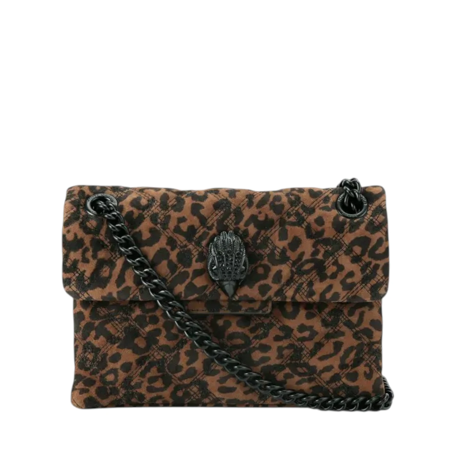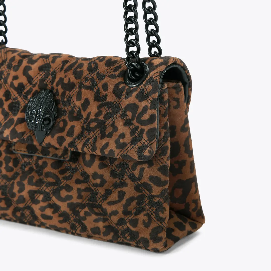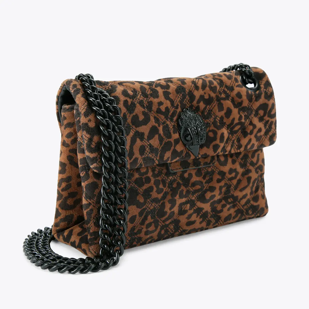 Τσάντα ώμου καφέ με μαύρο λεοπάρ μοτίβο, δερμάτινη suede, με αλυσίδα για κράτημα στον ώμο αλλά και χιαστί – Kurt Geiger