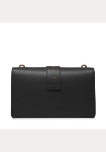 Τσάντα ώμου μαύρη, δερμάτινη, με χρυσά μέταλλα και σήμα και αλυσίδα με λουράκι για τον ώμο ή χιαστί – Pinko