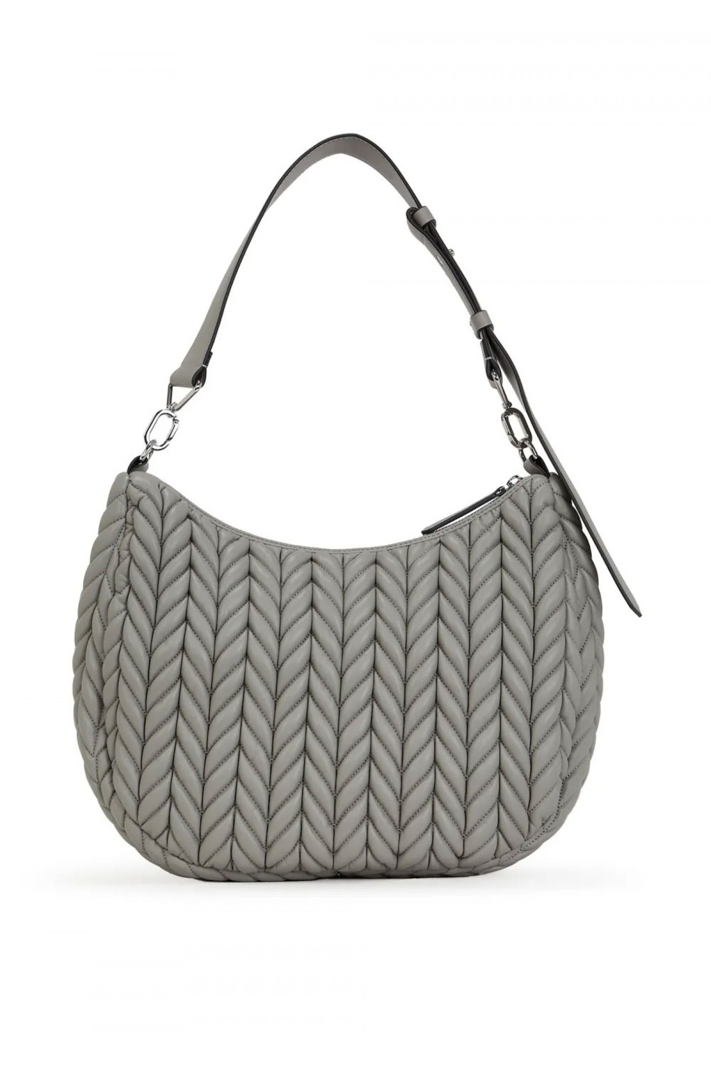 Τσάντα ώμου Hobo γκρι με πλεκτή υφή, με ιμάντα για κράτημα στον ώμο – Karl Lagerfeld